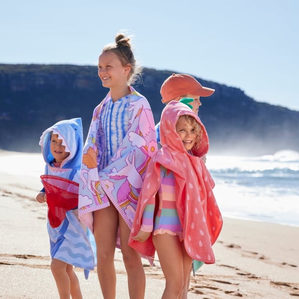 Keep them entertained this holiday season with toys made especially for poolside play! Guaranteed to bring out non-stop laughs and entertainment, for the (big and little) kids in your life, our choice of timber games or bucket & spade set will keep the party going all summer. A day out at the beach can be exhausting, especially for our little ones. Give them somewhere to relax that’s a bit comfier than the sand with a Kids Beach Chair. Lightweight with a carry strap, these trendy seats are easy to lug around. When it comes to packing up, don’t let wet towels put a dampener on your big day out! Made from absorbent terry towelling, you can pack away wet swimmers stress-free, with our funky Kids Beach Bags. Pair with a matching hooded towel for a stylish ensemble on their next trip to the beach.