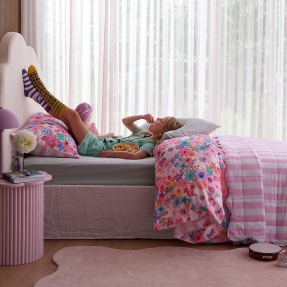 When it’s dark and drizzly outside we want nothing more than to stay tucked up in bed. But first, your bedroom needs to feel like an inviting haven. Hello, layers! A winter quilt made from Australian wool will keep you warm, but not hot, while you sleep. Pair with a premium cotton flannelette quilt cover and sheet set for the softest base layer. The texture of a sherpa blanket or faux fur throw adds warmth both physically and visually, while a weighted blanket can help you relax into a comfortable sleep. A bundle of plush cushions and a spritz of linen spray and you’ll have the ultimate comfort zone.