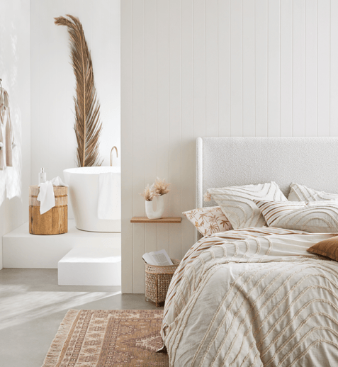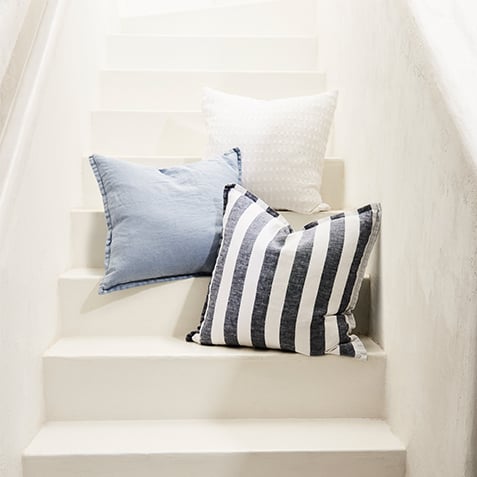 There’s something so uniquely summery about linen. With its light, breathable style, linen gives an airy feel to any space. Evoking the look of resort wear and elegant French fashion, flax linen is the perfect base for your home styling. Add a little bit of linen to every room with stacks of cushions in soft aquatic shades and sandy neutral tones. The aptly named Belgian Sea Breeze Vintage Washed Linen Cushion will add a fresh, Corfu style to your bed, couch, or outdoor lounge. Add a hotel vibe to your home and keep the look consistent by hanging a luxe linen robe in your bathroom.