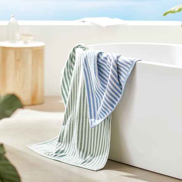 Take your cue from beach boxes and vintage swimsuits and opt for plenty of stripes this summer. Effortlessly bringing a seaside look to your home, this pattern looks fresh in soft colours. Teal, denim, beige, and white all look stunning in stripes. Nothing says holiday better than towels; add striped towels to your bathroom and striped beach towels to your beach bag. Go for an iconic style and create a Riviera-inspired look with servingware, tablecloths and outdoor umbrellas in classic blue and white stripes.