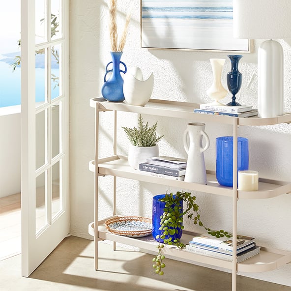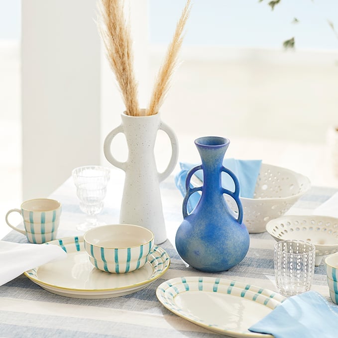 Be inspired by the glittering expanse of the ocean and add sea blues to your home. Perfect for adding pops of vibrant colour to your space, jewel-bright blues are perfect for breaking up lots of white and beige. Choose plain blue pieces like block-colour towels and glass vases to create a striking look that draws the eye. Consider adding the blue vases to your outdoor table at your next dinner party. We love scattering blue throughout the home in decor pieces, wall art, and especially in bedlinen. Create visual interest by playing around with darker navy shades and pieces in matte ceramic.