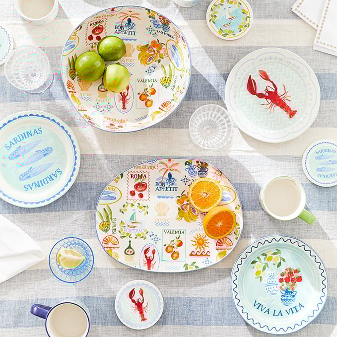 If the sunny days and warm evenings are inspiring you to entertain, reach for colourful, Italian-style servingware. Our Viva La Vita range will have you feeling like you’re eating al fresco in Amalfi. With the traditional splashes of bright orange and vibrant red, these bold pieces will stand out beautifully on blue tablecloths - all while continuing your coastal theme. Decorate your table with a bowl of fresh citrus, lobster friends, and platters stacked high with crusty bread. Consider a playlist of your favourite Roma tracks to keep the Mediterranean vibes going at your next BBQ.