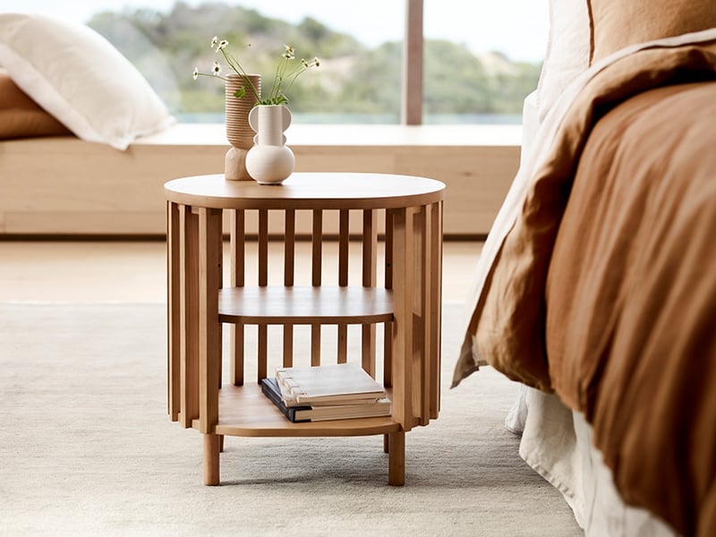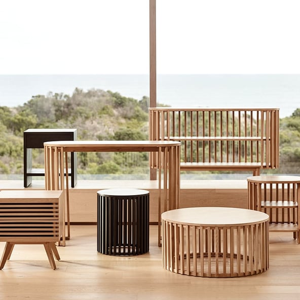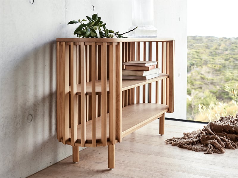 Ever a highlight of his Adairs collections, Mark Tuckey’s slatted furniture collection embraces his clean, understated aesthetic. Versatile and designed to last, the latest range includes a console, a sideboard, and bedside tables in solid American ash and European oak and ash.