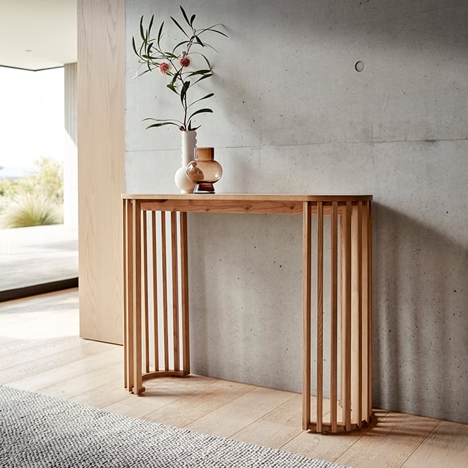 Crafted from solid European Ash timber, the Slat Console Table is totally timeless and made to last.