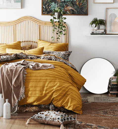 If you’re feeling a little daunted by the myriad ways to style checks – fear not! You can’t go wrong with pairing your gingham sheets or quilt cover with a block colour. Opt for a textured fabric like Bamboo Linen to elevate your styling, and make sure to match the colour to the check to create balance. Or for something a little bolder, try a contrasting base colour. We suggest pairing warm, rust shades with neutrals such as bone or cream.