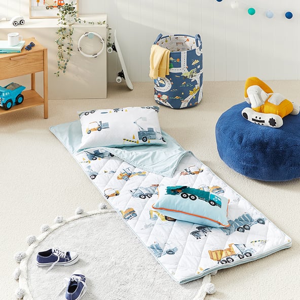 We’ve got pieces for every budding builder! Our construction-themed items are patterned with illustrations of trucks, diggers and bulldozers that your little one will love. Let them drift off in their construction zone, surrounded by their favourite heavy machinery.
