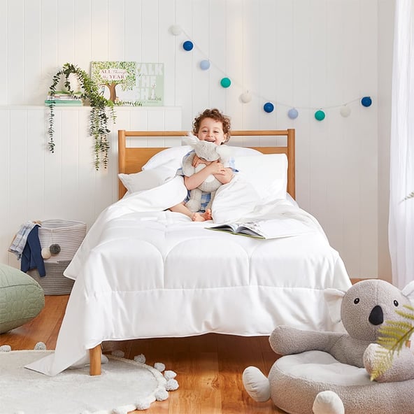 Our bamboo-blend filled pillows are available in two different heights, to provide the perfect level of support for your little one, while our Downtime Bamboo Rich Kids Quilt is perfectly comfortable all year round.