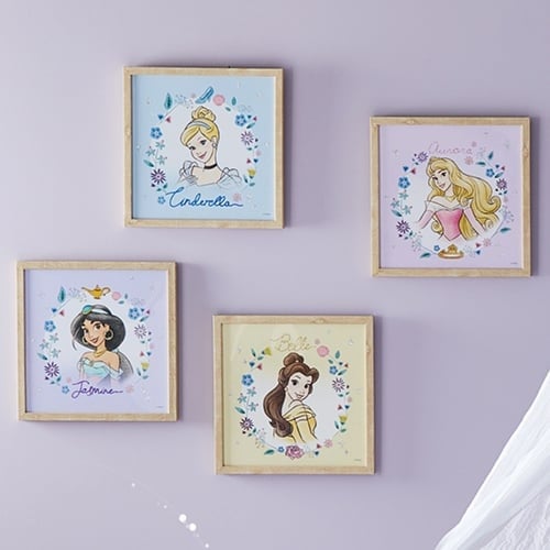 Make their favourite Princess the hero of their room with the Disney Princess wall art collection. Choose from 6 beautiful designs, all featuring metallic details that are sure to add a little magic to any wall they adorn.