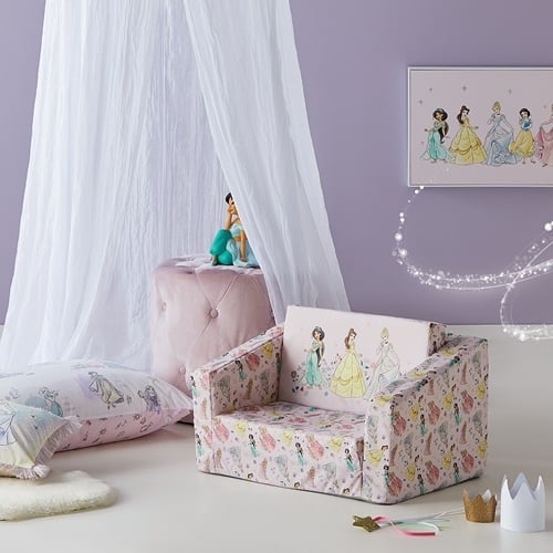 The Disney Princesses dance across this beautiful flip out sofa to create the ultimate Princess hang out spot. With a durable cover, your little ones will have the best seat in the house for a Disney Princess movie marathon.