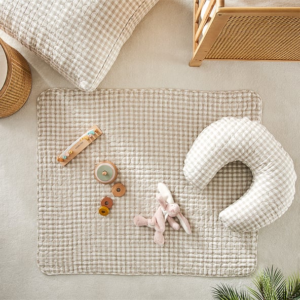 As your little one grows and becomes more curious about the world around them, it’s important to incorporate play time into their routines. Using one of our Vintage Washed Linen Quilted Play Mats as the base for your play area, you can build a spot they will love. Perfect for tummy time, our play mats are made from French flax linen with a quilted design, and can even be used as a coverlet as they get older.