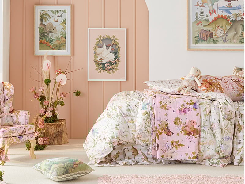 Since 2018 we've been lucky enough to work alongside Melbourne-based artist Fleur Harris, to create beautiful collections for our Adairs Kids range. Gathering inspiration from the natural world, with an added spark of wonder, Fleur illustrates friendly characters and wonderful scenes that will inspire happiness and joy in any home. Explore the enchanting worlds of Fleur's artwork, across our collections.