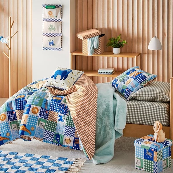 Some little ones can find sleeping away from home daunting - make it easier on them by setting up a thoughtful place to rest. Shades of blue are perfect for encouraging a calm mind and make an ideal antidote to all that slumber party excitement. A sweet teepee will bring the fun of camping indoors, while also providing a dedicated relaxation zone.