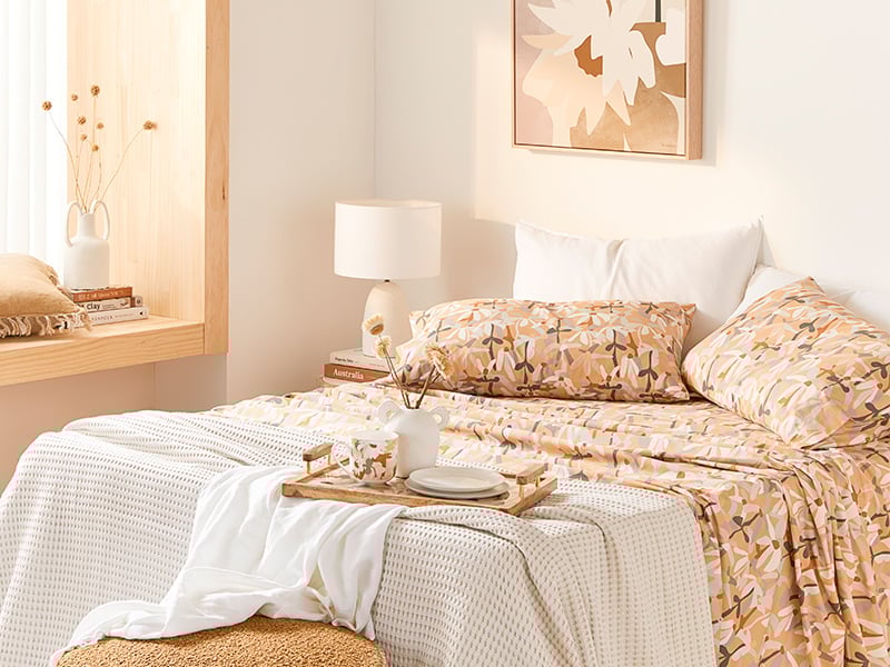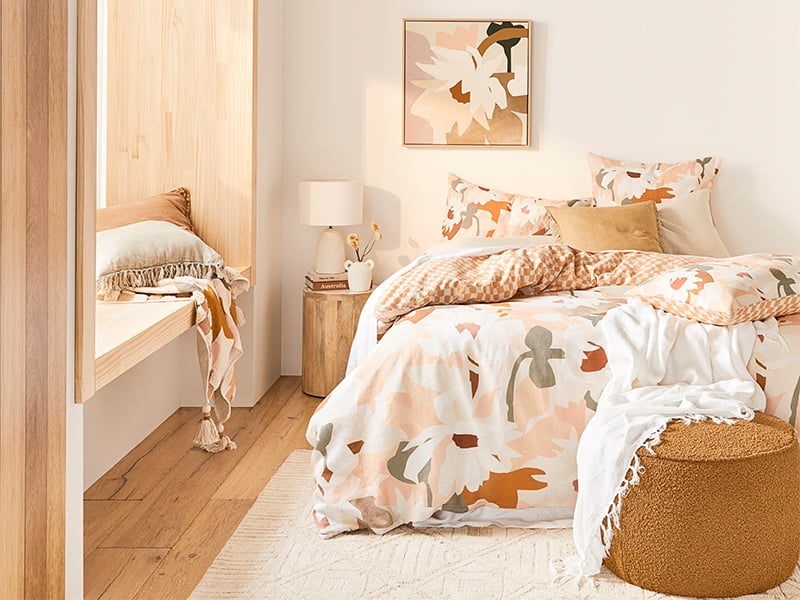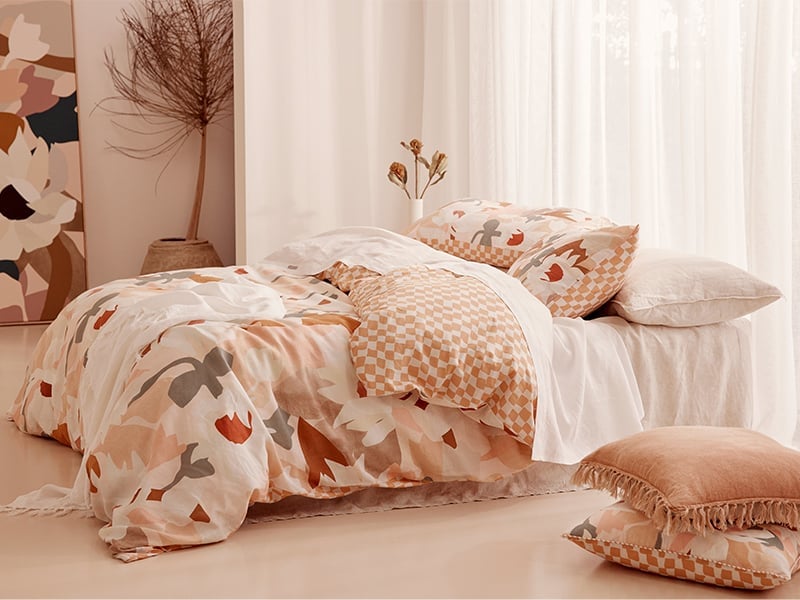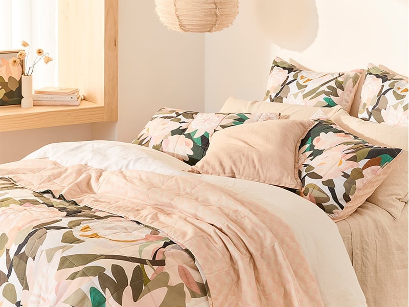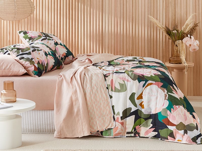 Oversized proteas, blushing daisies and bunches of hyacinth are featured on our Kimmy Hogan x Adairs bedlinen. The floral designs are printed onto 100% linen, exclusive to this collaboration. Pair any of these quilt cover sets with the Splendour Sheet Set for a bedroom abundant in botanicals.