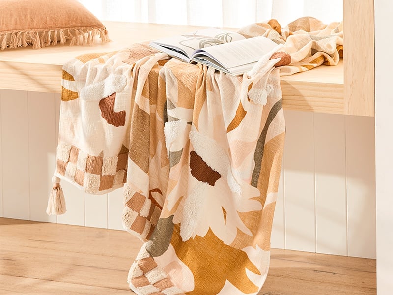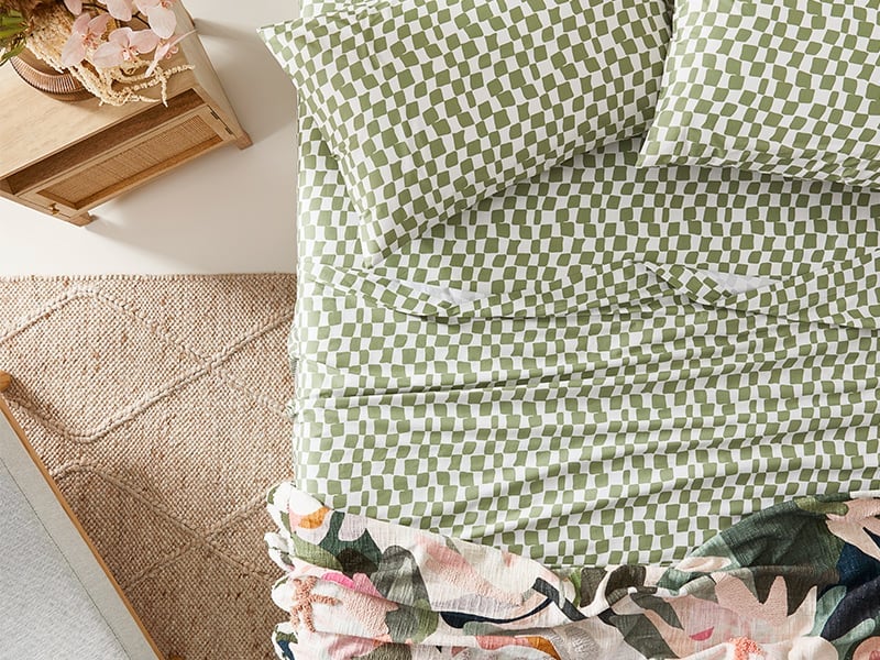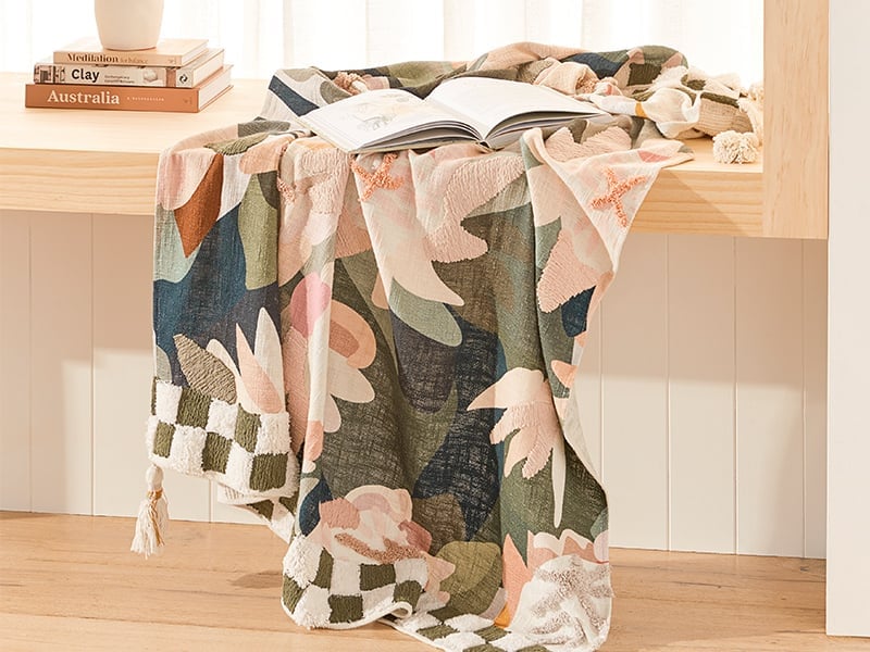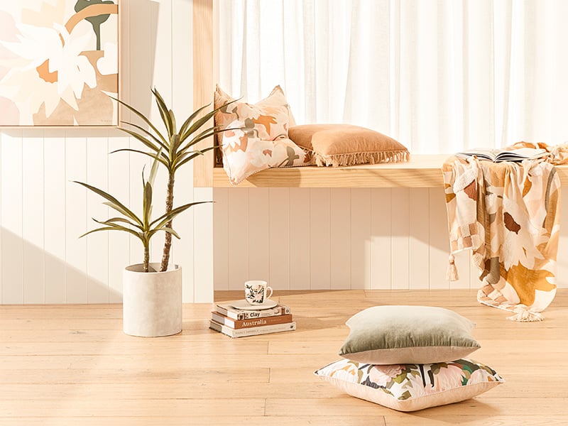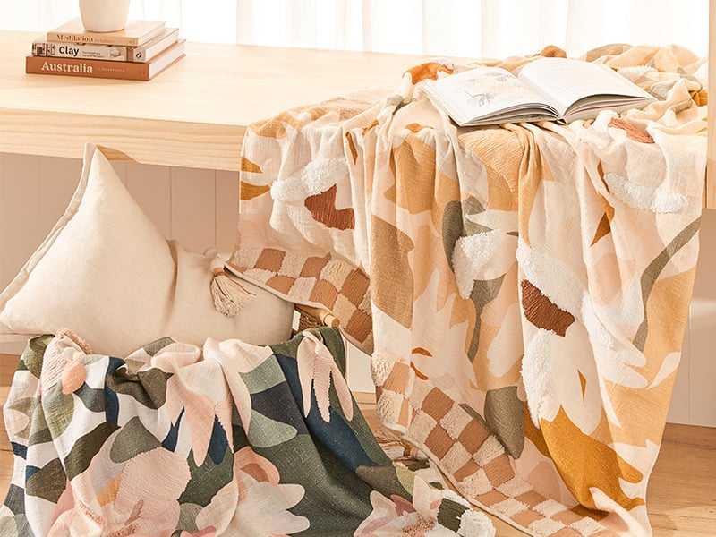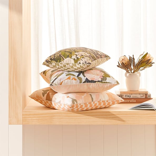 Scatter these floral designs throughout your home with printed cushions and throws. Abstract check patterns are set against these botanicals, adding a modern feel to any space. We love pairing these pieces with shades lifted from the designs themselves, like rich greens or a soft blush.